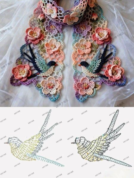 The Beautiful Crochet Bird Scarf is a delicate, artistic piece that transforms yarn into visual poetry.