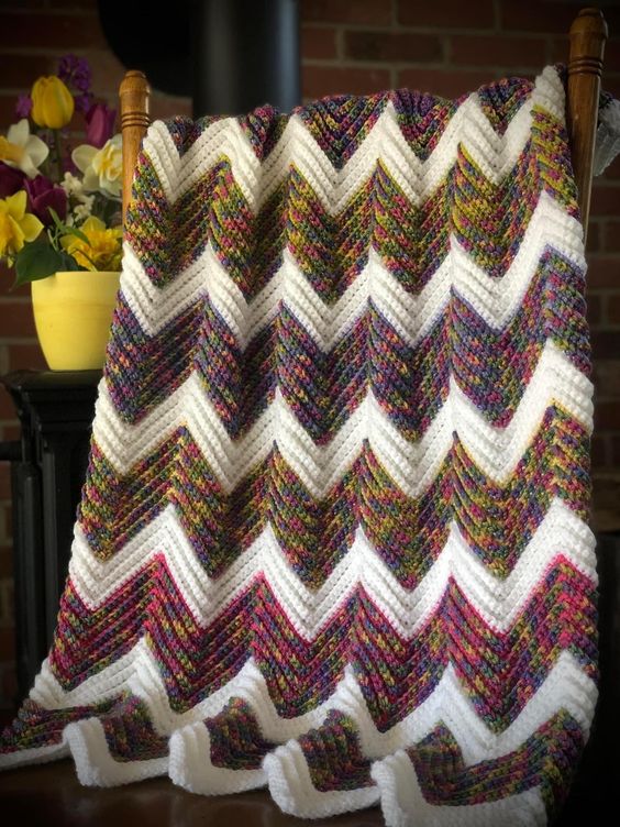 The crochet chevron blanket is a piece that features a zigzag pattern, which is created by combining double crochets and decreasing stitches.