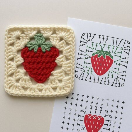If you love playful and charming crochet motifs, this Strawberry Crochet Square will instantly brighten your projects. It blends the cozy look of a classic granny square with a sweet red strawberry in the center, creating a fun and eye-catching design.