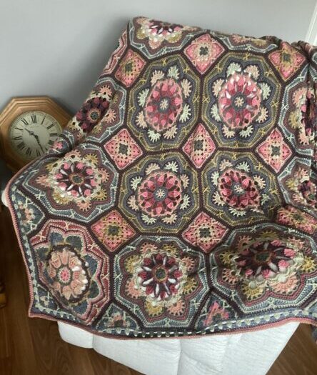 Mandala-inspired crochet motifs combine texture, color, and geometry in a beautiful way. For this reason, they have become one of the most popular crochet blanket styles in recent years.