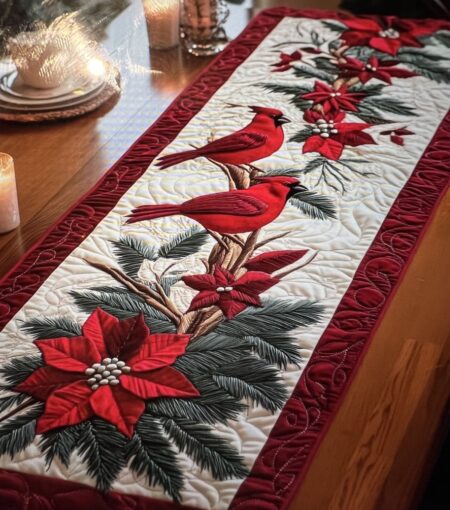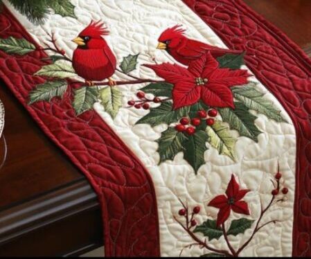 American quilting beautifully combines tradition, creativity, and comfort — and when it comes to Christmas décor, few themes are as charming as the poinsettia and the cardinal, both symbols of winter and holiday warmth.